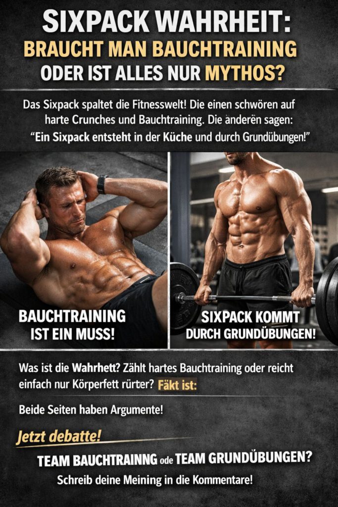 19. Februar 2026Das Sixpack spaltet die Fitnesswelt wie kaum ein anderes Thema. Die einen schwören auf endlose Crunches und tägliches Bauchtraining. Die anderen sagen klar Ein Sixpack entsteht in der Küche und durch hartes Grundlagentraining. Bauchübungen sind Zeitverschwendung.